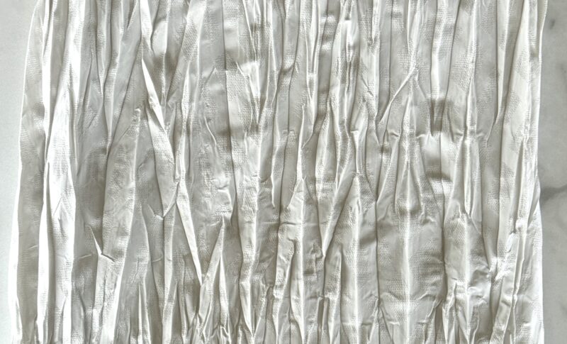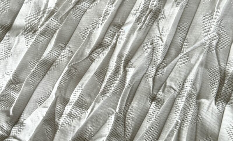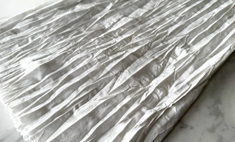 張り感のある薄手のポリエステルをシワ加工し軽さを表現しました